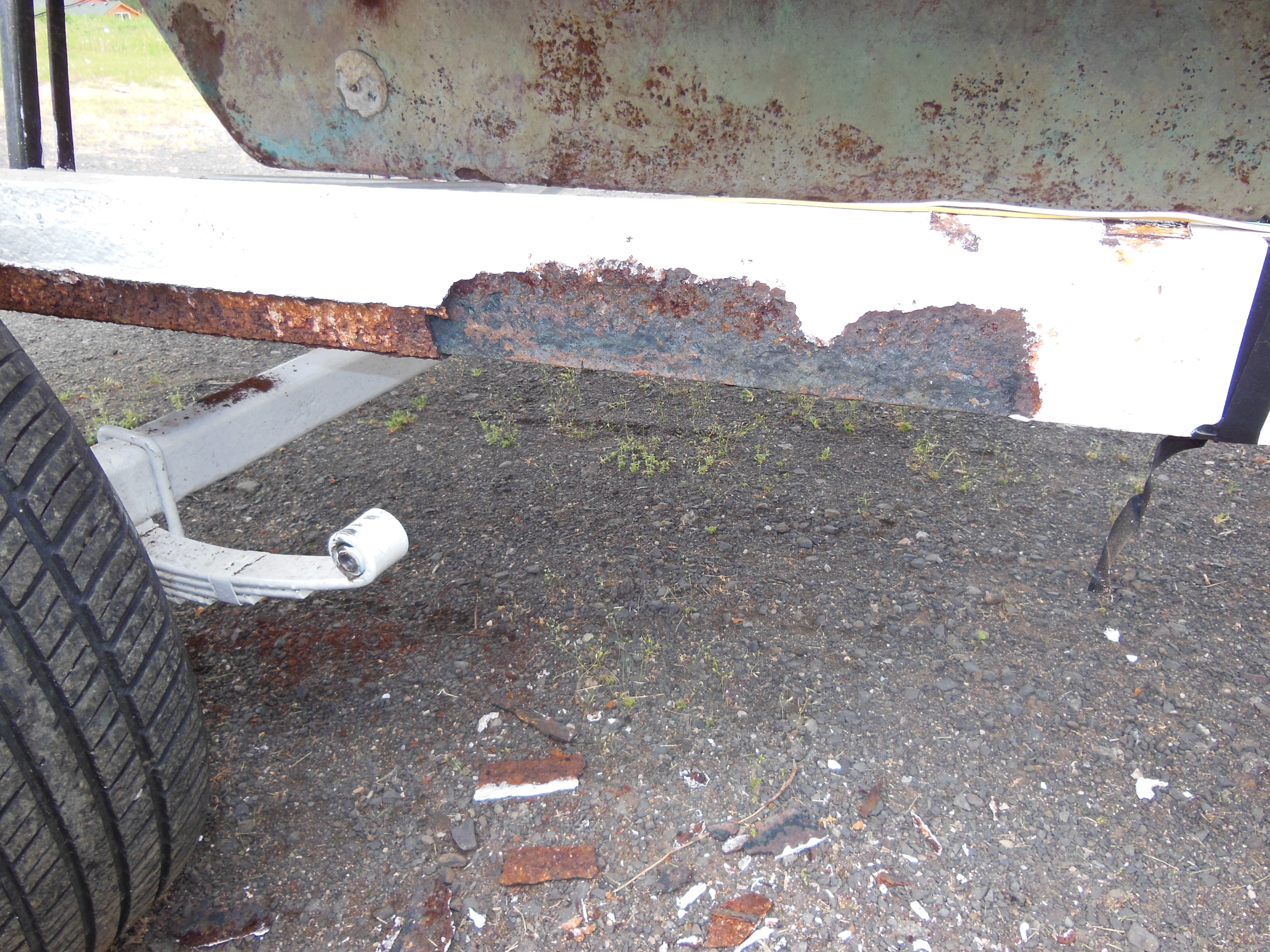 When we bought Summer Dance, easily the most dangerous damage to the overall package was the trailer spring hangers. The trailer was a 1981 Trail Rite that had been used to put the boat in the salt water of Puget Sound for 30 years of its life. However, in spite of a paint job that the previous owner had brushed on to sell the boat, the frame hadn’t receive proper maintenance. Consequently, the passenger side spring hangers were about 50% corroded away, 100% in small spots. The driver side hangers weren’t quite as bad.