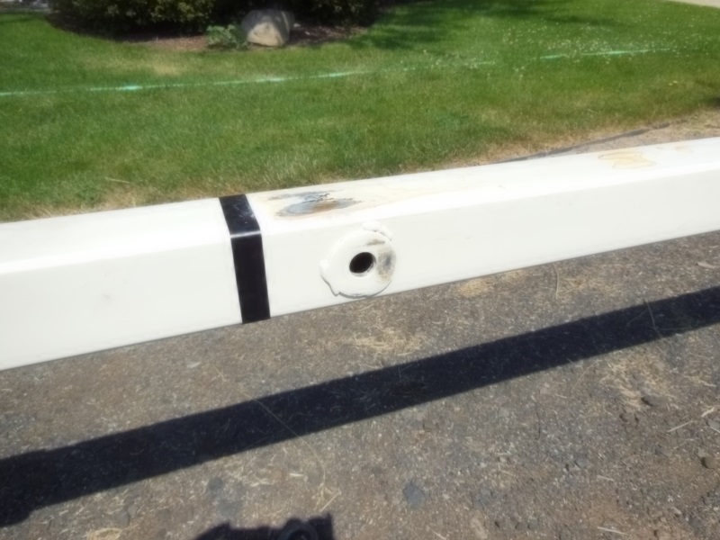 I relocated the wiring exit to the empty bottom 1″ of the main tube and hammered out the front end. I removed the top two boom bolts and replaced them with a 3-1/2″ x 5″ square U bolt around the boom flanges.