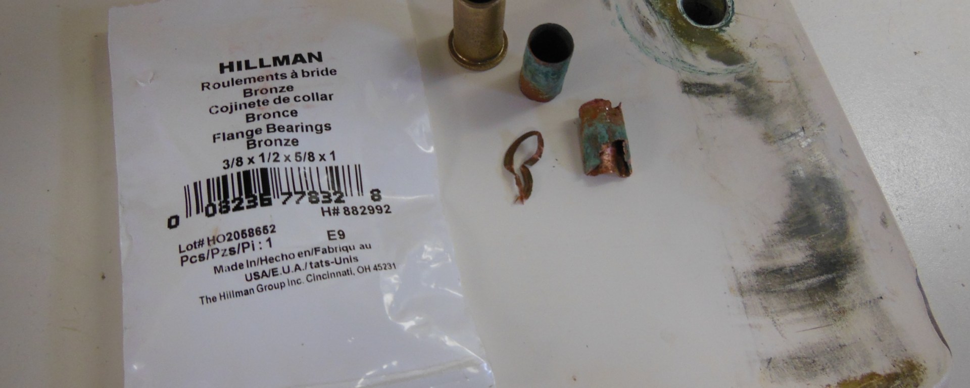 A certain Catalina parts dealership doesn’t offer replacement bushings. The rudder is a “non-serviceable” item. I’d seen bronze bushings at hardware stores before but my luck has always been that they’re the wrong size for the job at hand.
