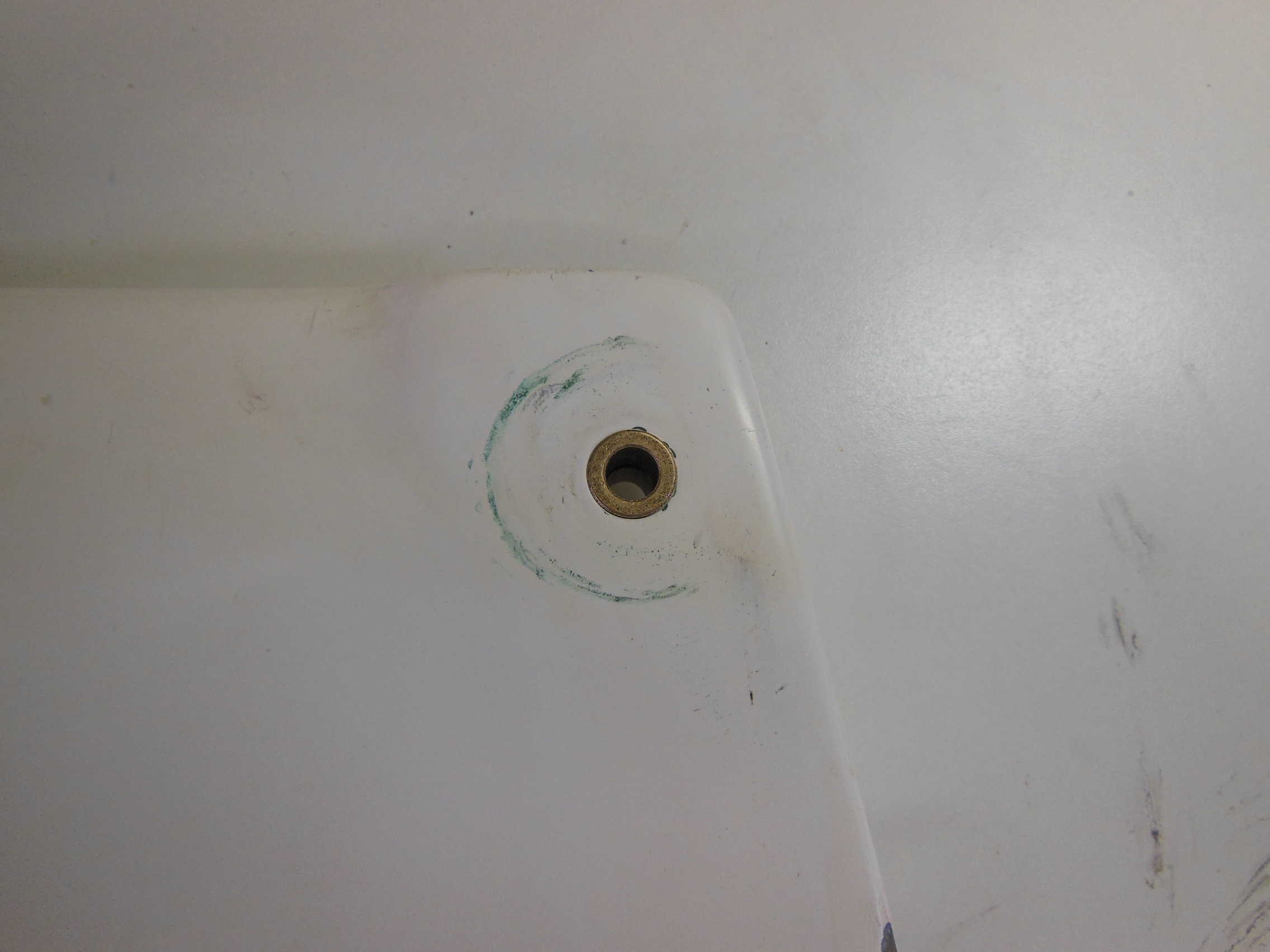 This time, I was in luck! Lowes happened to have 3/8″ x 1″ flanged bronze bushings with 1/16″ walls. The C-22 tiller bolt is 3/8″ in diameter and the original bushings are seated in a shallow countersink the thickness of the bushings, which isn’t much. They seem to be made of paper thin copper. Since the rudder is 1-1/2″ thick, two of the bushings would be more than long enough, one from each side.