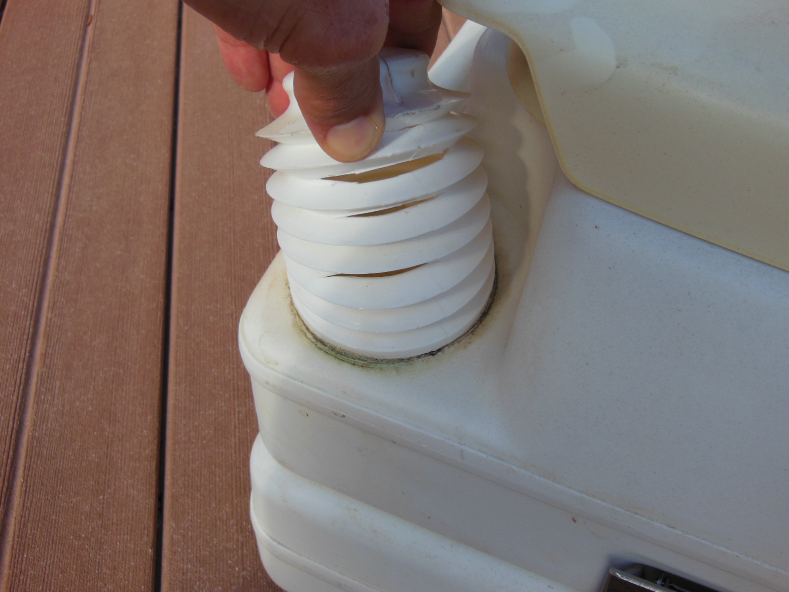 I replaced that first portable toilet with a similar type from a respected brand – a SeaLand SaniPottie 960 to be precise. The SeaLand brand is now owned by Dometic. I expected it to last long enough to earn its reputation. Oh, no. The bellows on the second toilet didn’t last the next season before it gave out.