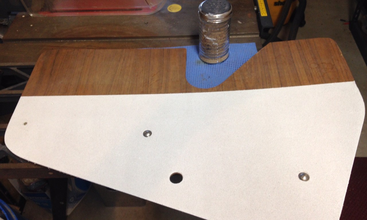 When the companionway step/locker lid on Mirabel would get wet, it created a footing hazard when entering the cabin. I originally installed a small piece of rubber floor mat there. Unfortunately, the molded-in design provided minimal traction when wet. The texture crumbled off and created a mess that could have potentially clogged my electric bilge pump. I considered replacing it with a scrap of carpet but I decided against it figuring it would be a potential breeding ground for mildew.