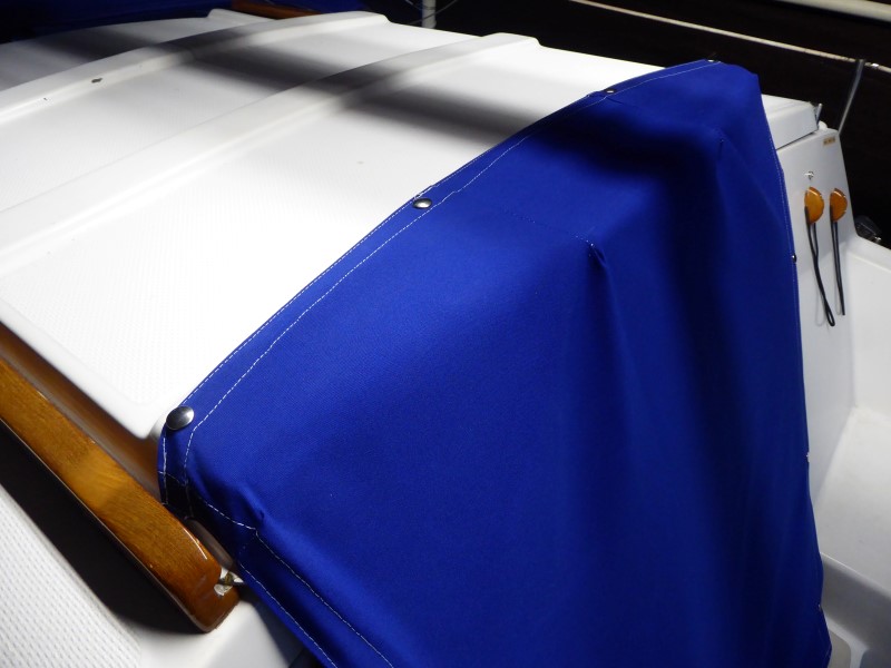 I designed this cover to be economical, easy to make, and to take advantage of the snap studs that are already installed on C-22s that have a pop top curtain. If your C-22 doesn’t have a pop top curtain, it will work for you too. You just need to install the snap screw studs. It protects the sliding hatch weatherboard & handle, most of the crib board trim, companionway threshold, and of course, the crib boards. It snaps on and off and folds for easy storage.