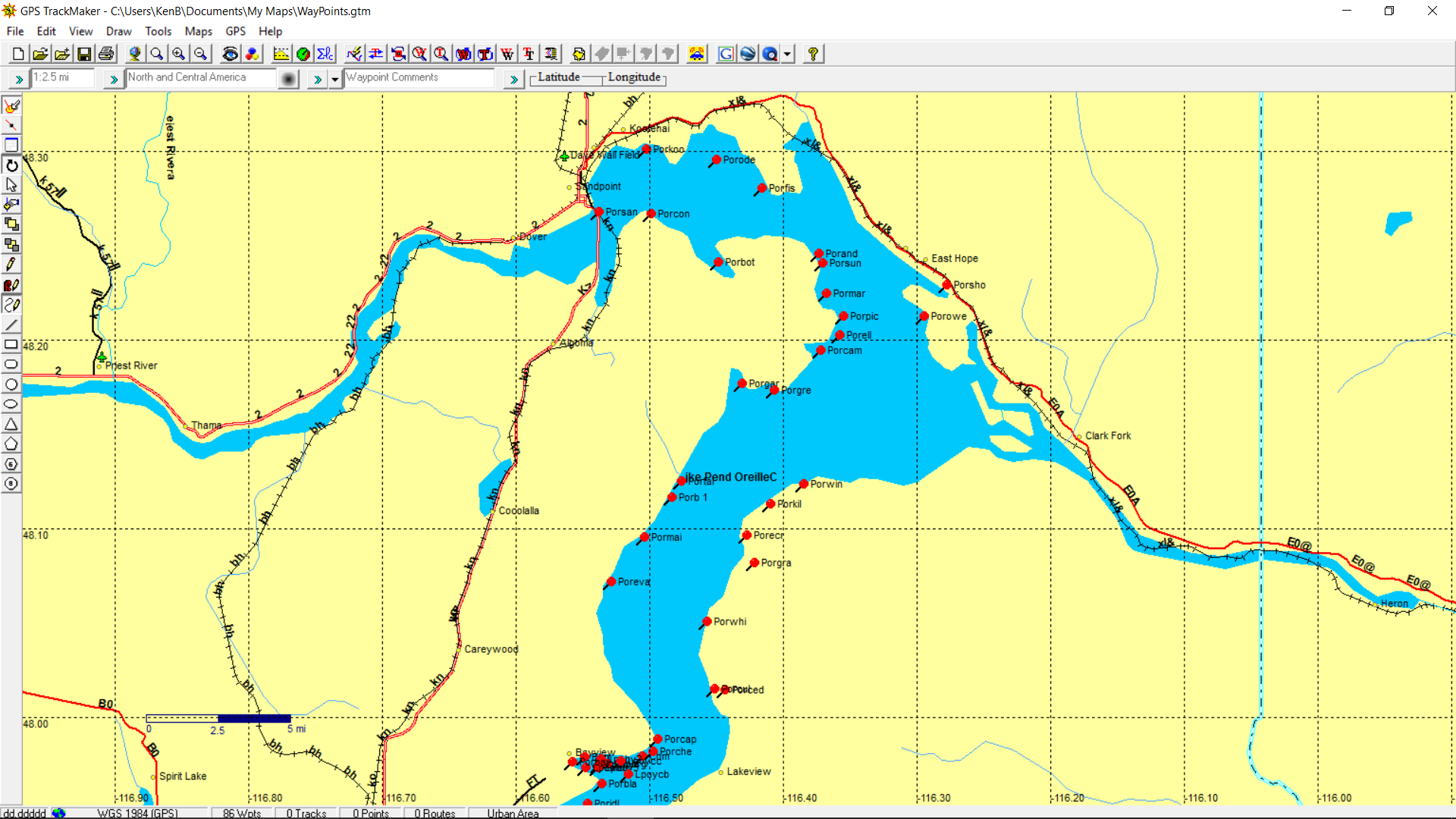 For example, the picture below shows the same track and waypoints as above but displayed over satellite photos.