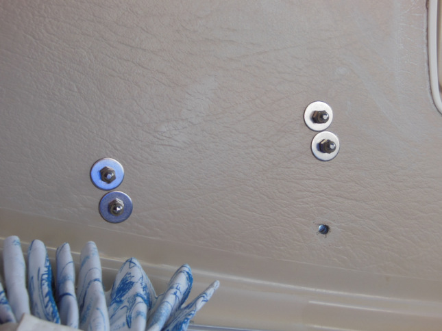 Use 3-1/2″ through-bolts, fender washers, and lock nuts (or lock washers and acorn nuts), not wood screws to mount the deck organizers and cleats or clutches. They will be under a lot of force from the lines running through them and the hollow core roof is not strong enough to hold the force otherwise. For a tip on drilling accurate holes through the roof so that there is equal space on the underside for the fender washers, see DIY Drill Guide For Accurate Holes.