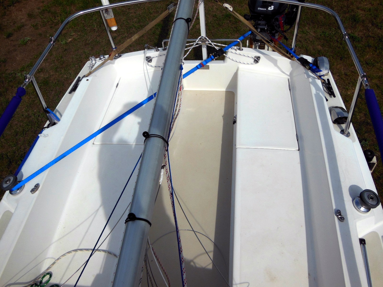 4. Another question, since I can’t seem to get the site menu to open on my devices for a search of your posts… Did you once do a post about using one’s mainsail boom to lift the motor so you could then move it to the side to lower it to the ground? I don’t believe that would work for my Venture 21; not without an extension of some kind for the boom.