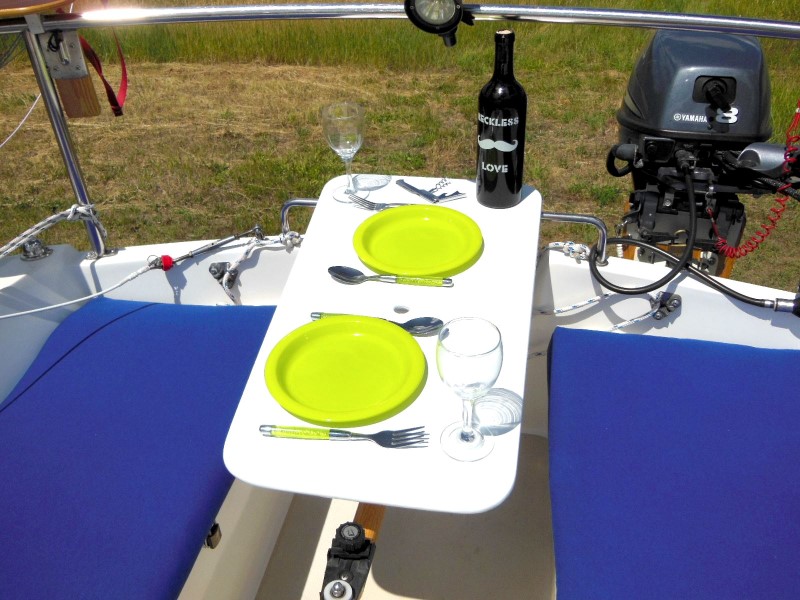 When the weather is great and you’re anchored in a secluded cove at dinner time and there’s an amazing sunset happening, do you regret having to go down into the cabin to eat at a cramped dinette? I do. I’d much rather eat topside and soak in the natural surroundings and not miss a minute of the night’s light show.