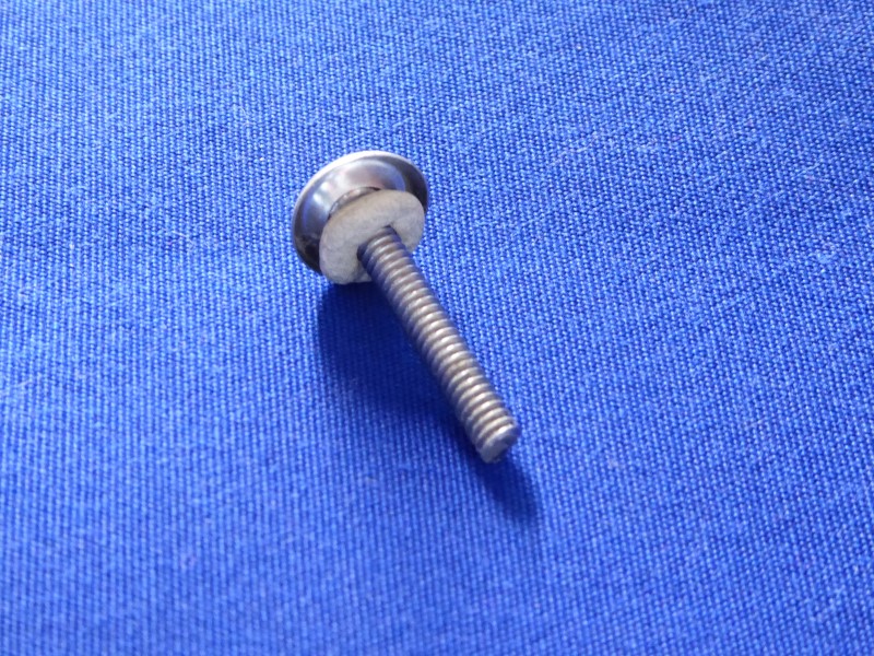 5. Slide the butyl ring onto the fastener and press it tight against the washer or head. For finish washers like I show here, the butyl should easily fill the washer with excess to spare.