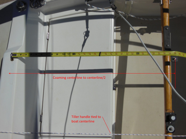 Now you can measure from the tiller pin to the centerline of the top of the starboard coaming. It should be about 32-1/4″.