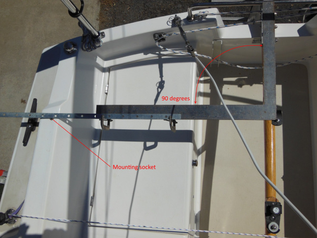 The next step is to mark the location of the mounting socket on the top of the coaming. This point should be at 90 degrees from the tiller pin when the tiller is aligned to the center line of the boat.