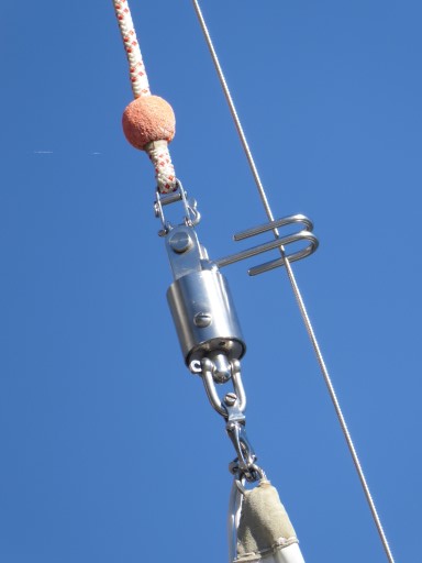 - If you already have a furler and the halyard sometimes wraps around the forestay, you can prevent it by installing a halyard restrainer on the front of the mast a little below the masthead like this: