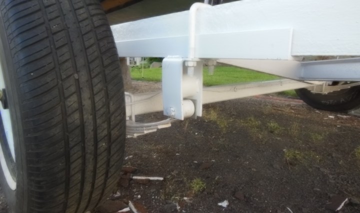 When we bought Summer Dance, easily the most dangerous damage to the overall package was the trailer spring hangers. The trailer was a 1981 Trail Rite that had been used to put the boat in the salt water of Puget Sound for 30 years of its life. However, in spite of a paint job that the previous owner had brushed on to sell the boat, the frame hadn’t receive proper maintenance. Consequently, the passenger side spring hangers were about 50% corroded away, 100% in small spots. The driver side hangers weren’t quite as bad.