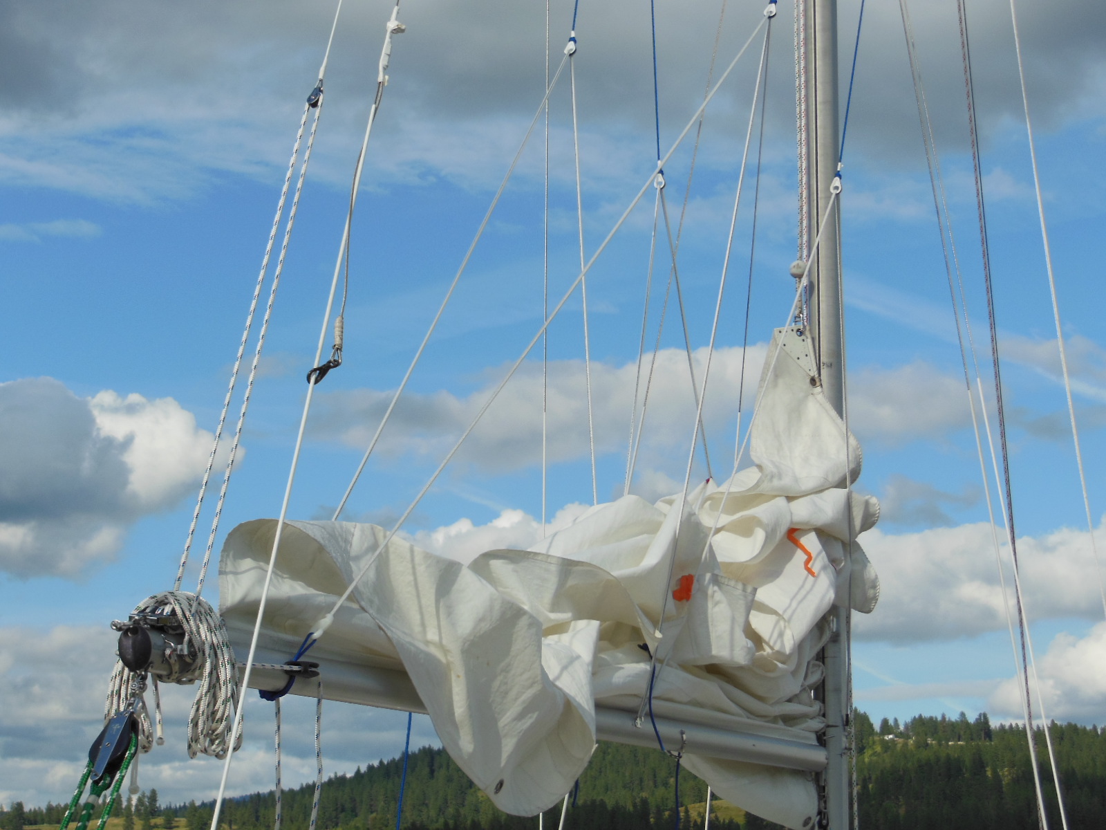 I did think about it before making the cover. But for a smaller sailboat, dry sailing, reefing, and performance reasons a sail pack would be more hassle than convenience. For how and where I sail, I’m very happy with the combination of lazy jacks and the cover.